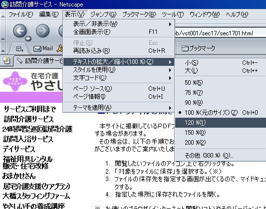 読みづらく感じられるときは、 以下のような方法で文字のサイズを大きくしてみてください。